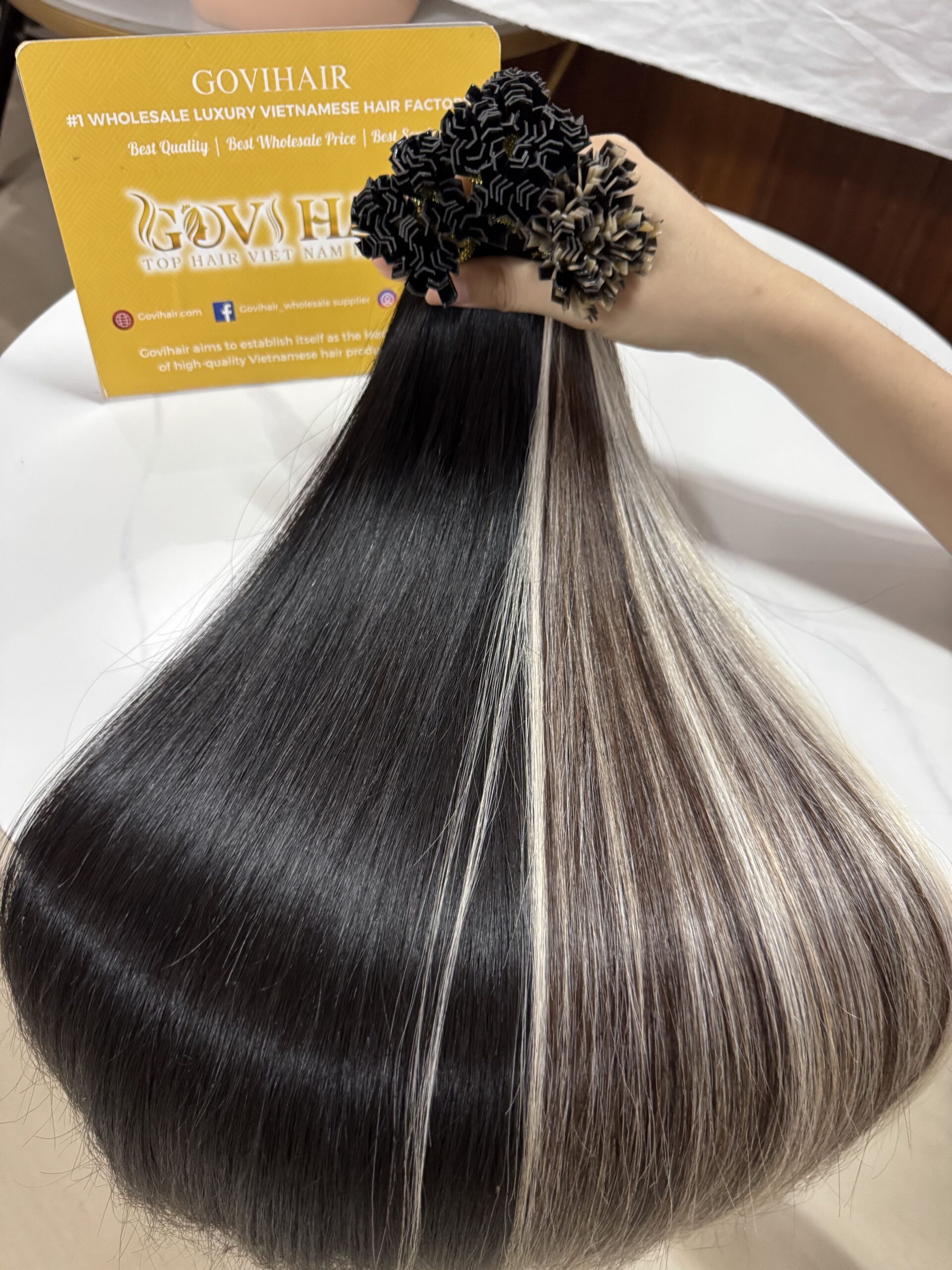 22 Inch Straight Mix Piano #2/613 Color V Tip Hair Extensions