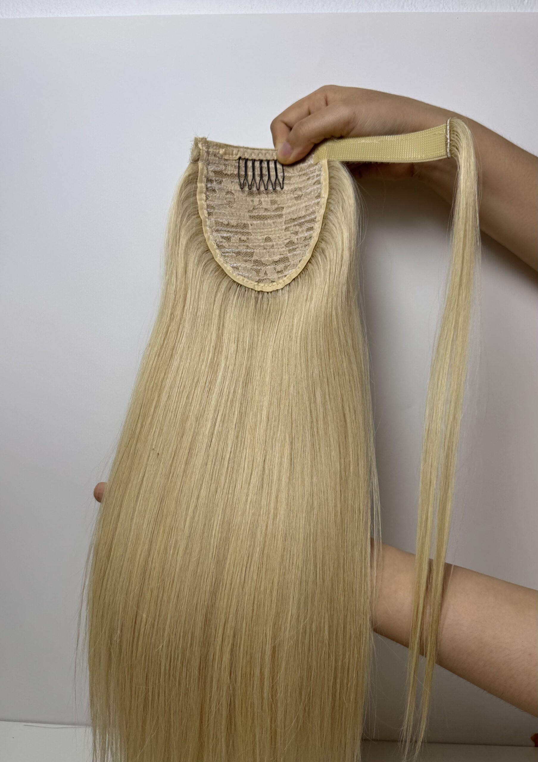 26 Inch Straight #613 Blonde Color Ponytail Hair Extensions 100% Human Hair