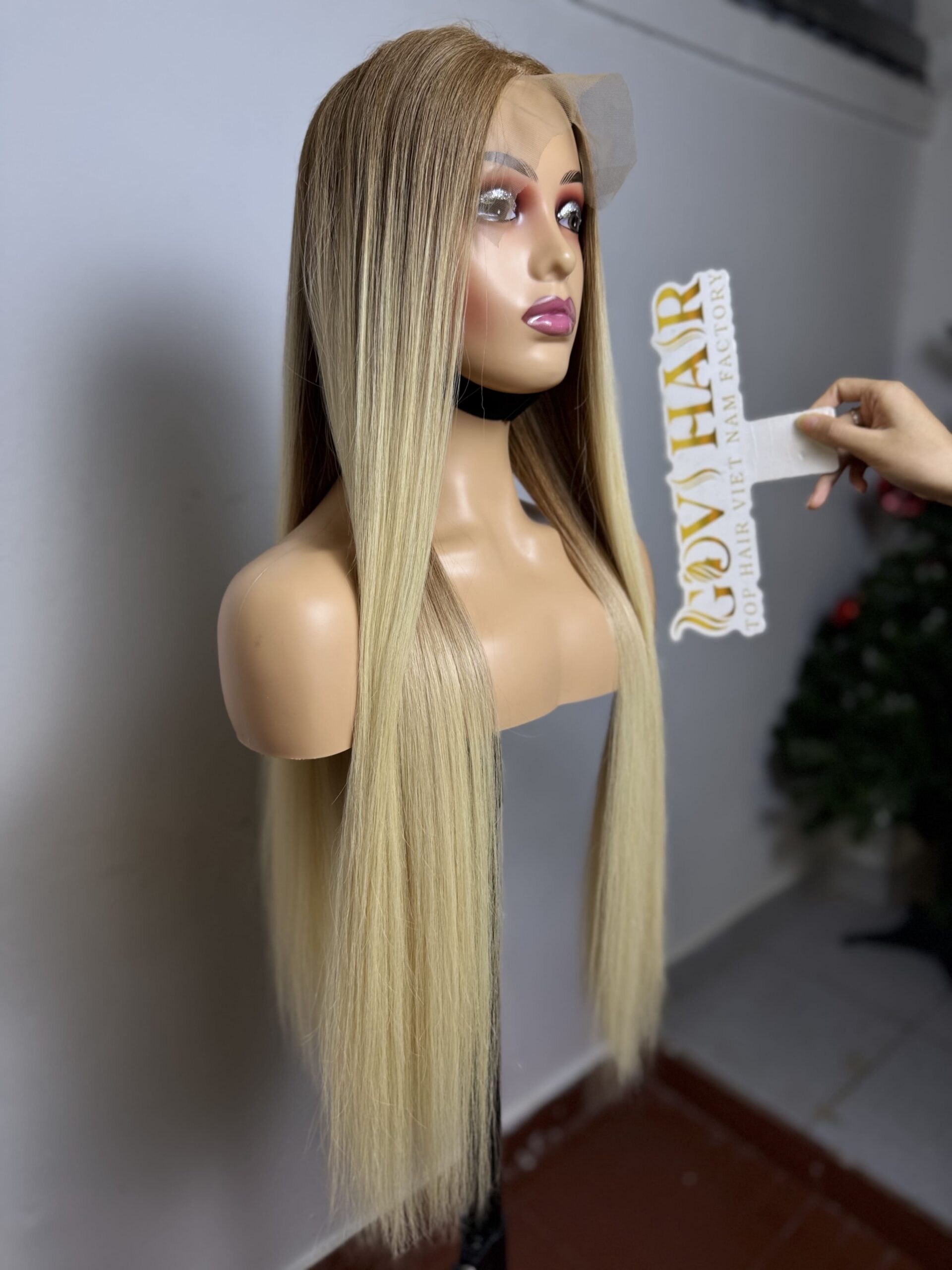 Straight Human Hair Closure Wig 7×7 HD Lace 28 Inch 180% Density Ombre Blonde Color